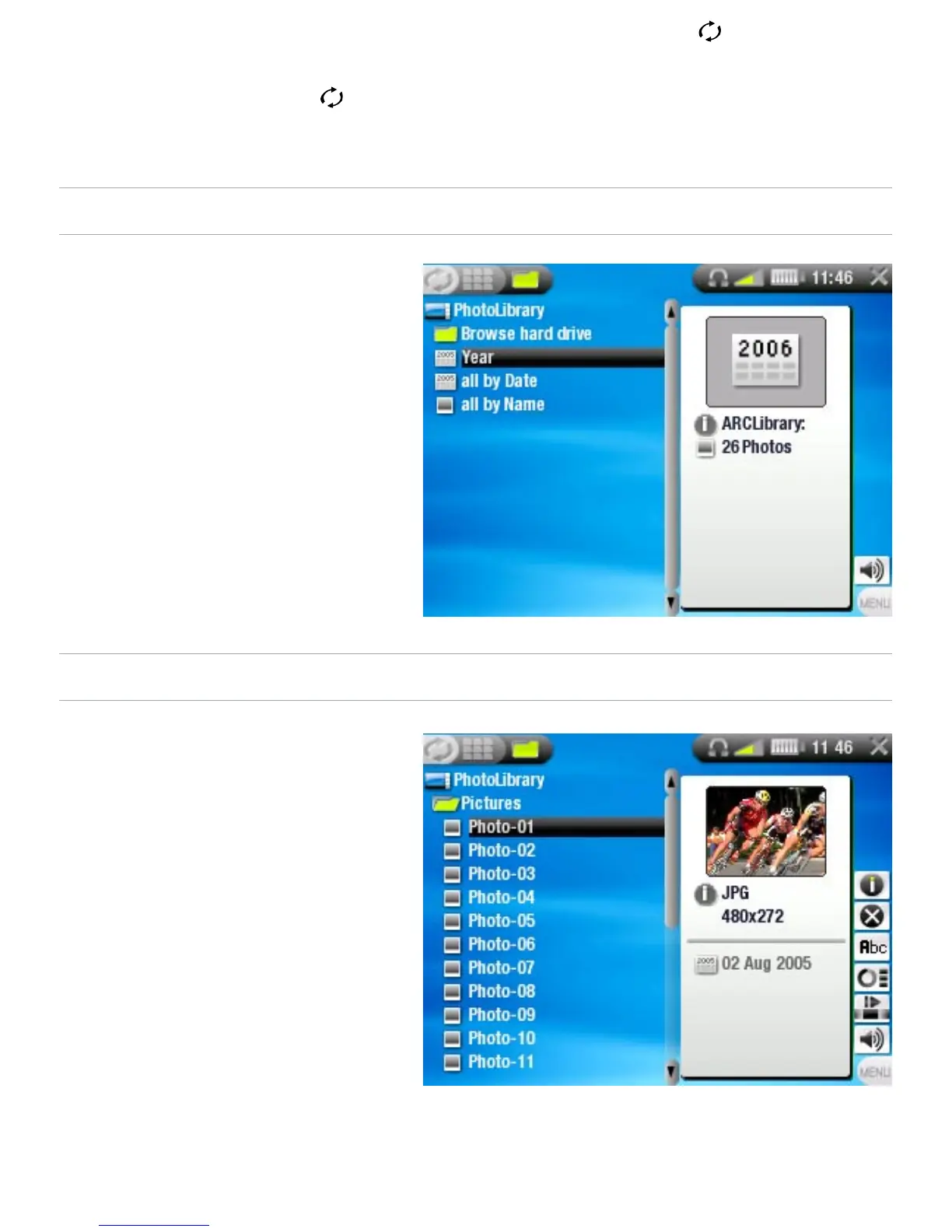 Archos 404 - PHOTO BROWSING VIEWS; PhotoLibrary View Description; Photo Browser View Description