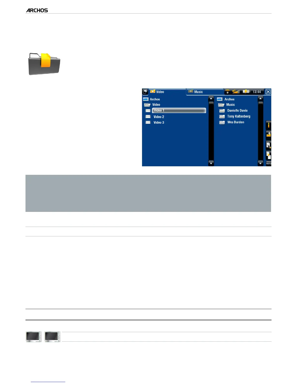 The ARCHOS File Browser gives you the possibility to navigate the le
