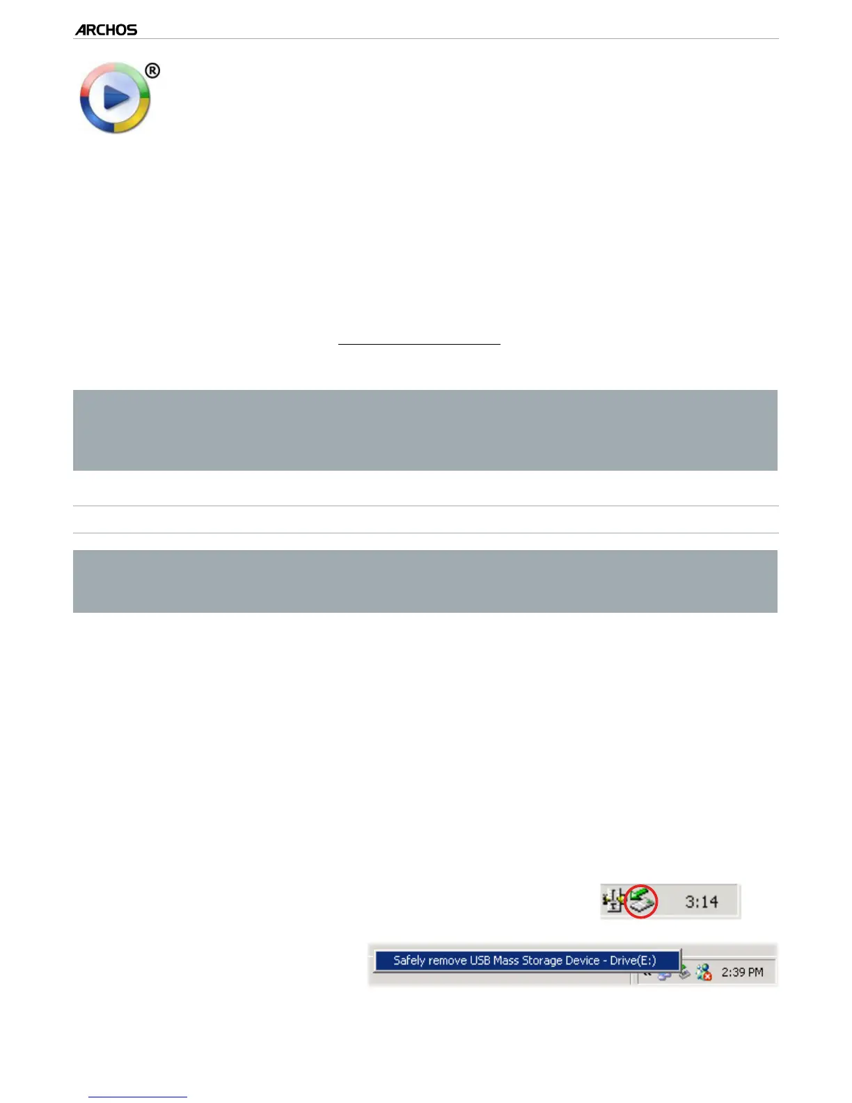 ARCHOS from the computer before disconnecting the USB cable to avoid loss of data