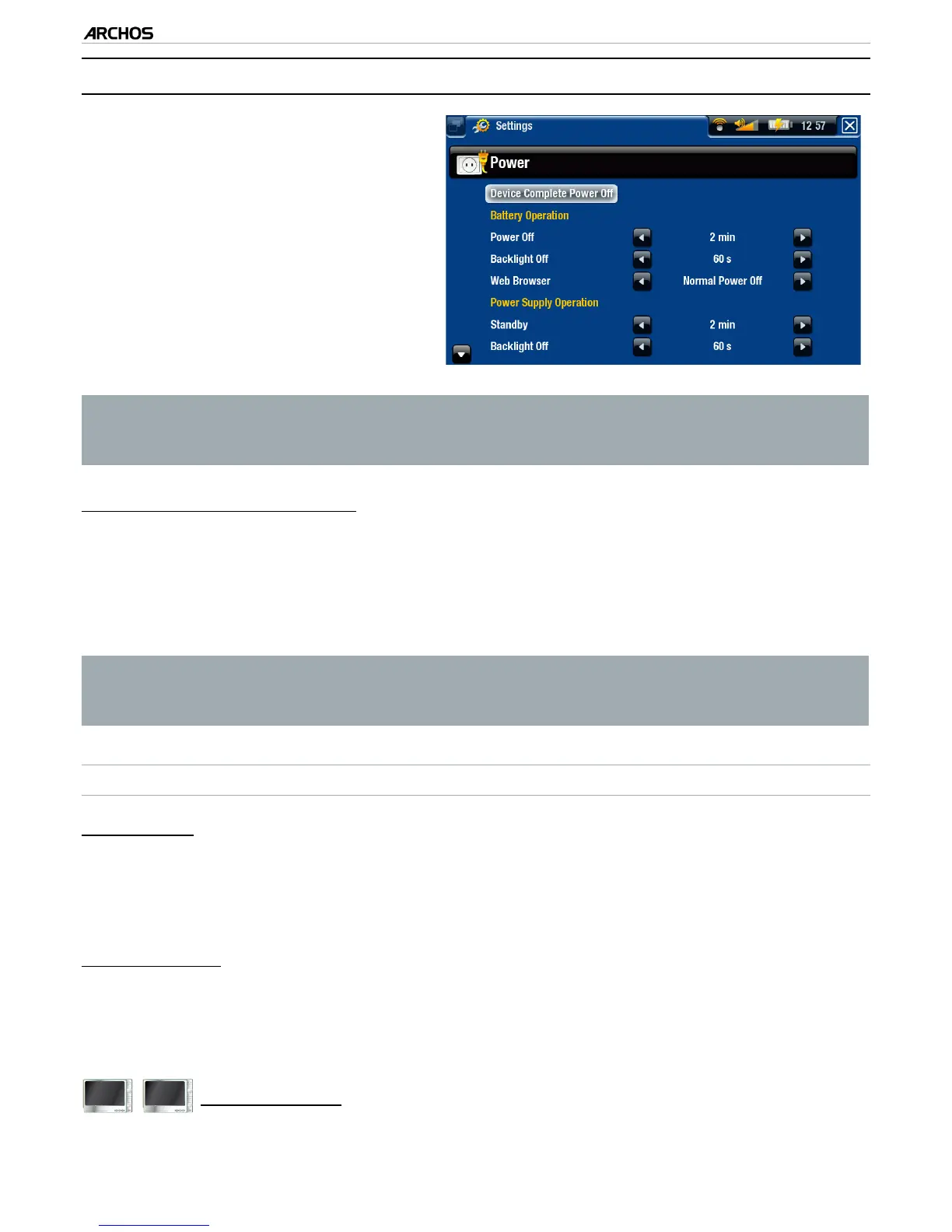 “Normal Power Off”: while browsing the web, the ARCHOS will shut down ac-