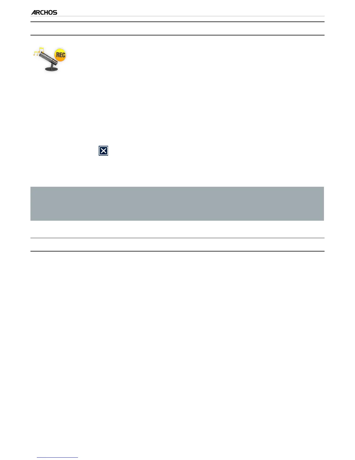 * All audio recordings made by your ARCHOS device are saved in the “Music/