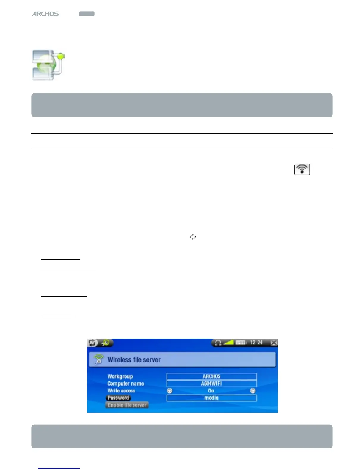 Your ARCHOS 604 WiFi allows you to share les with other computers or