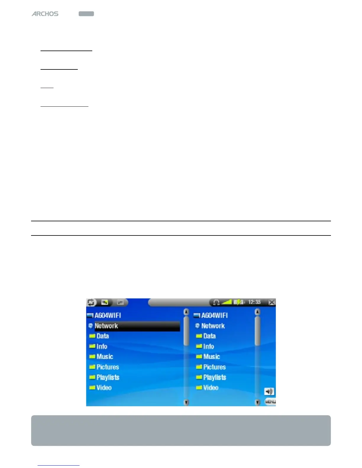 ers of other computers in the network, using the Archos File Browser.
