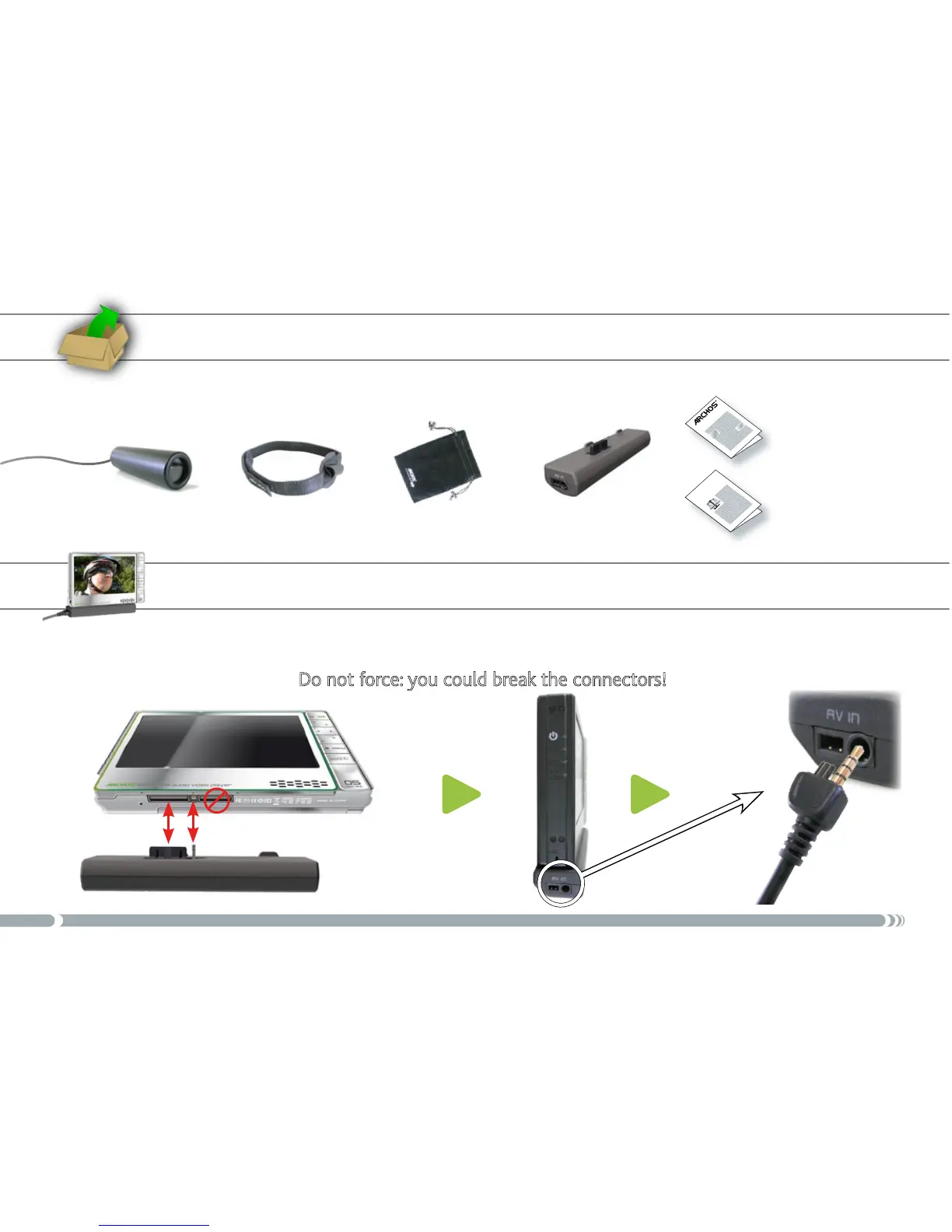 Carefully connect/disconnect the adapter to/from your ARCHOS device.