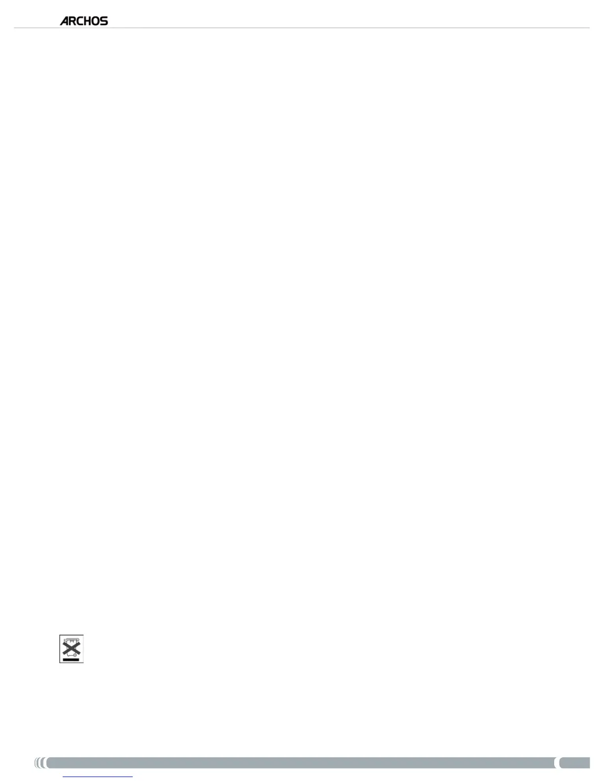 entsorgt werden. Produkte dieser Art enthalten potenziell die Umwelt und die Gesundheit gefährdende Stoffe. Daher dürfen ARCHOS-Elektronikgeräte