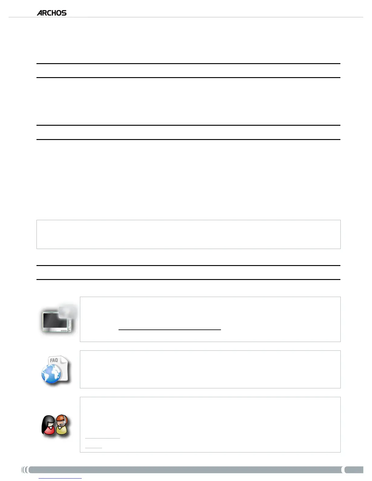 Visit www.archos.com/support for e-mail support (e-mails in English, French and German).