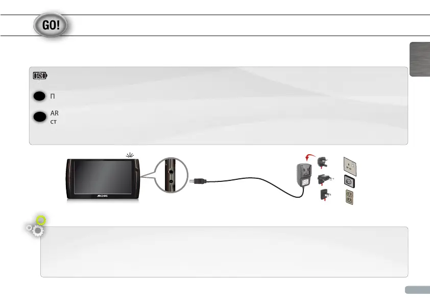 Перед первым использованием ARCHOS полностью зарядите батарею!