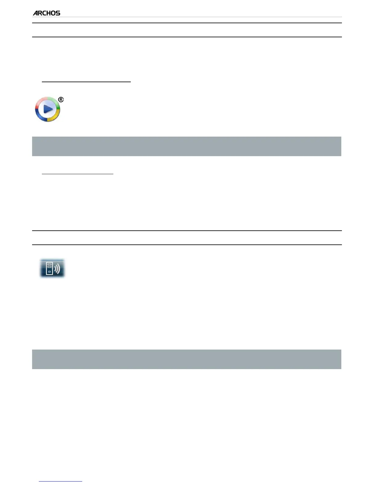 The ARCHOS uses the UPnP (Universal Plug-and-play) standard to stream shared