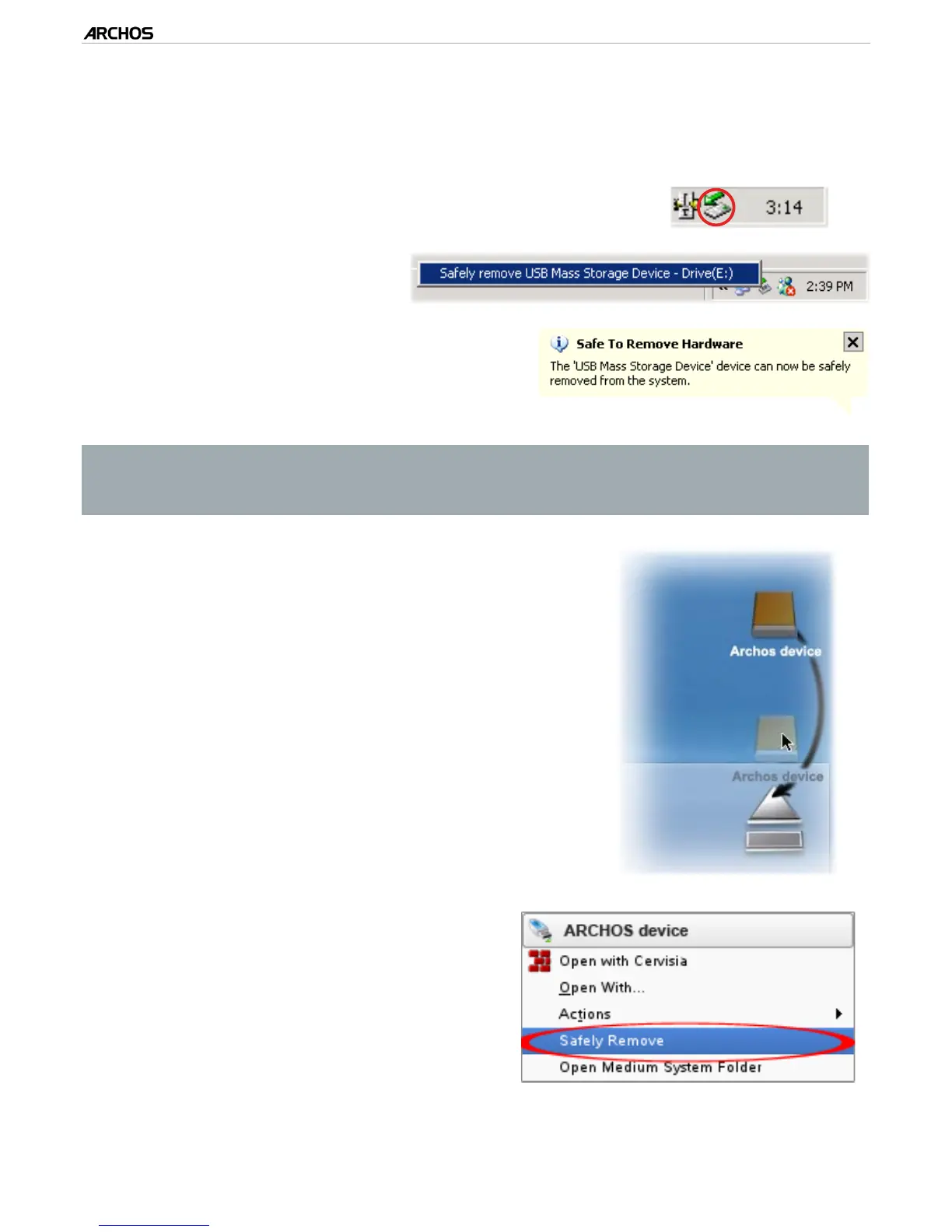 ARCHOS from the computer before disconnecting the USB cable to avoid loss of data
