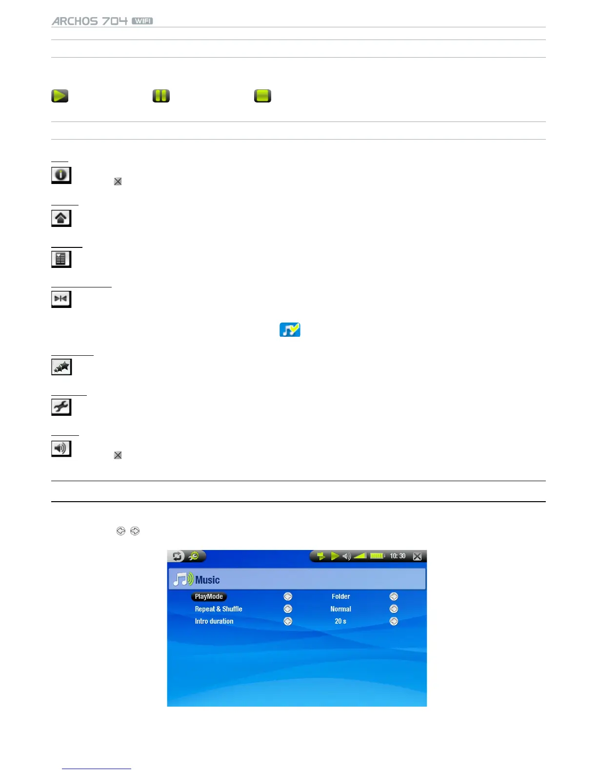 will display the Music settings screen (see next chapter).-