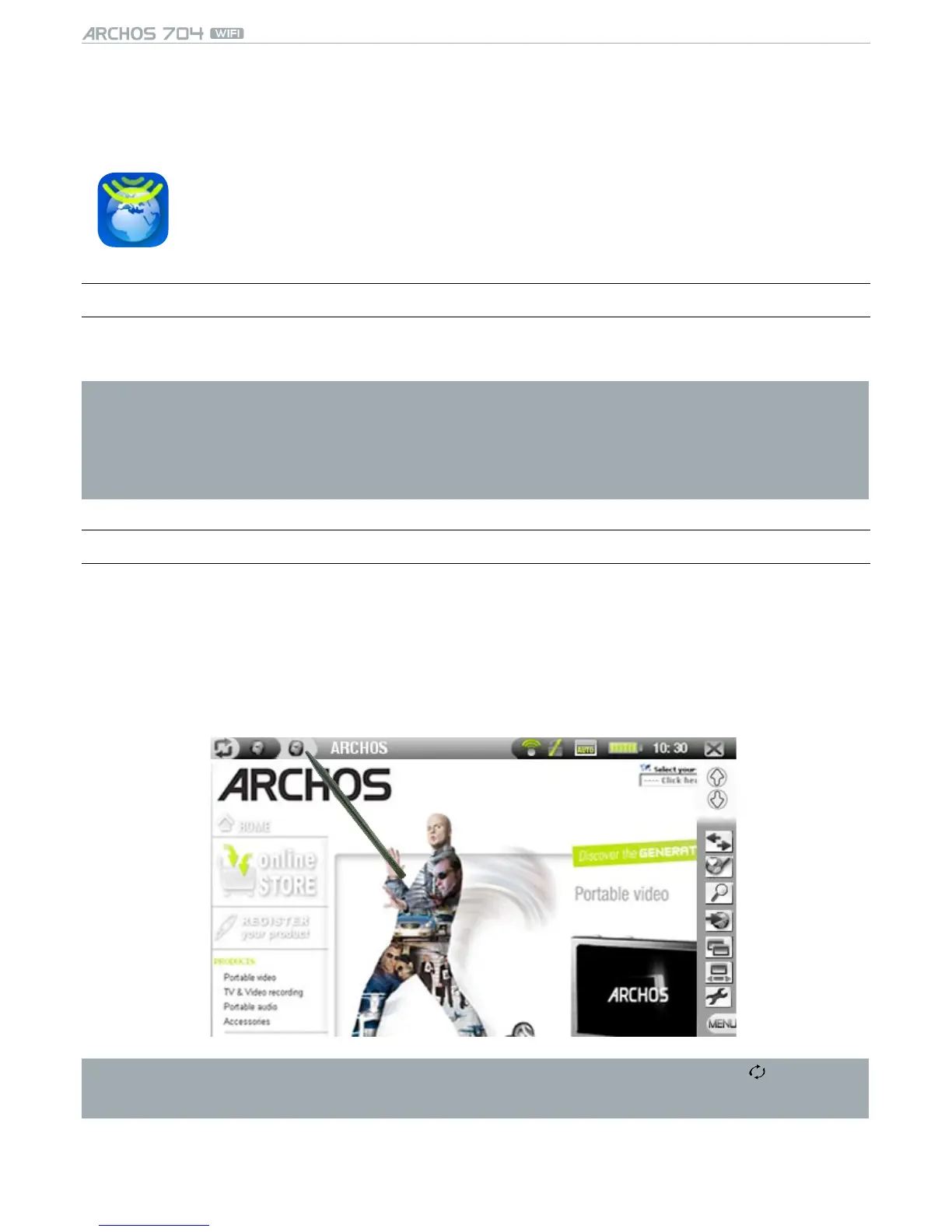 Your ARCHOS 704 WIFI features a Web browser that was designed especially for this ARCHOS