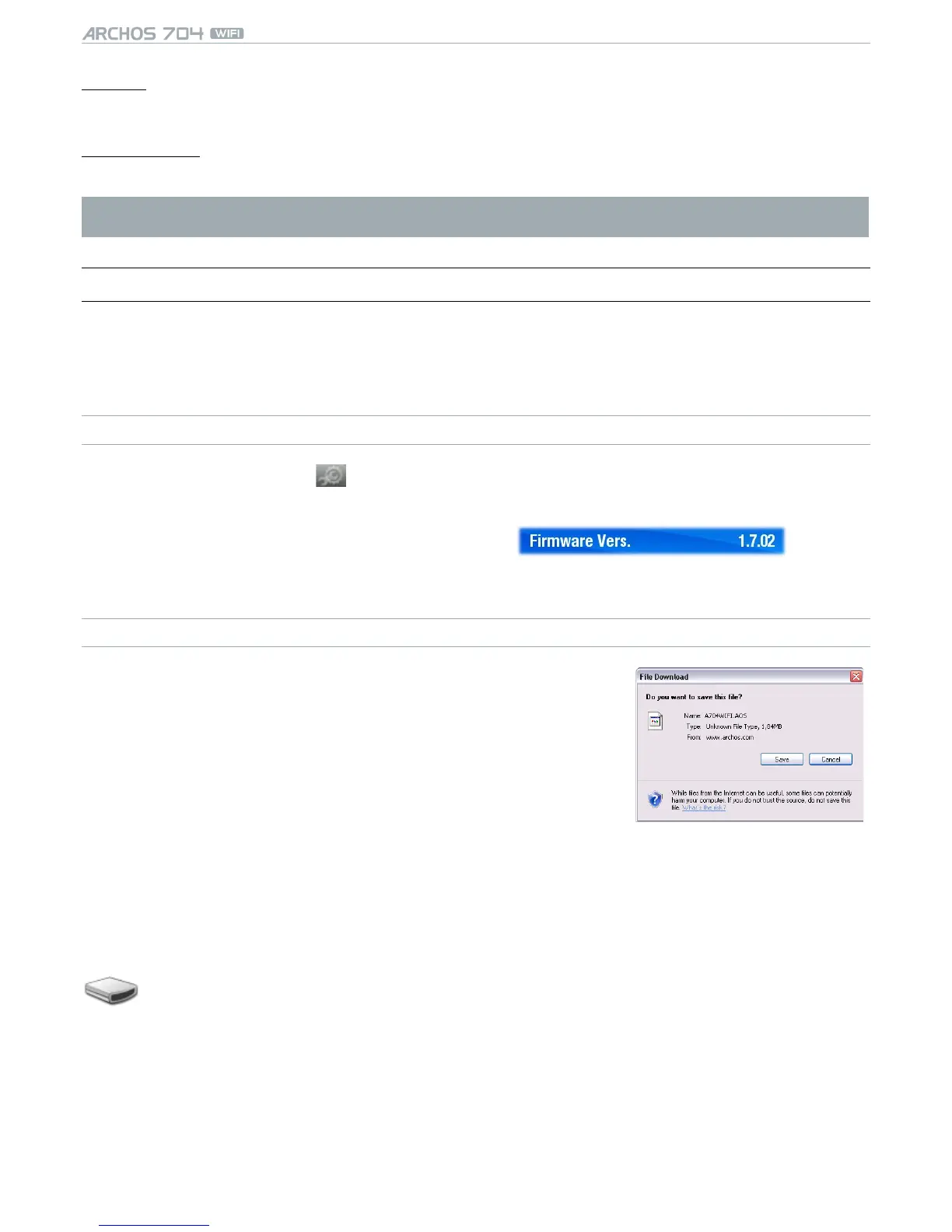 harm your computer. ARCHOS rmware les are safe: click on Save and