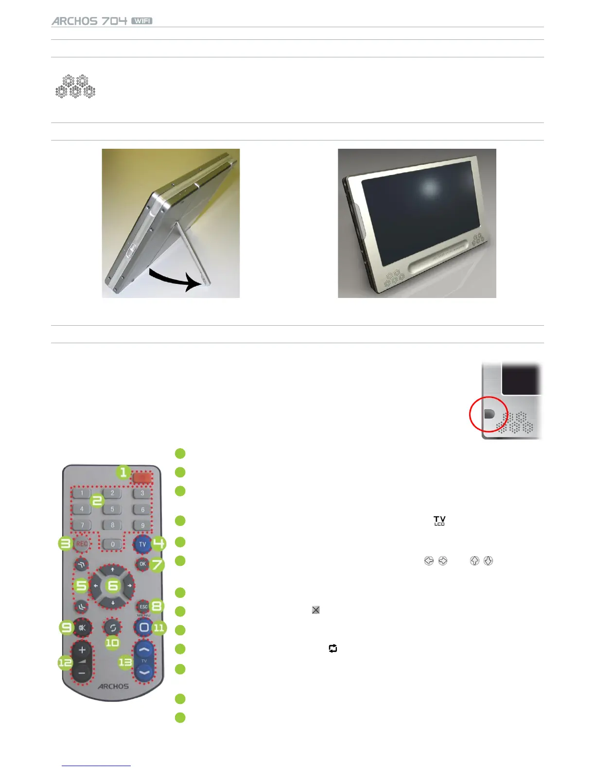 Point the supplied remote control towards the infrared receiver to control your ARCHOS