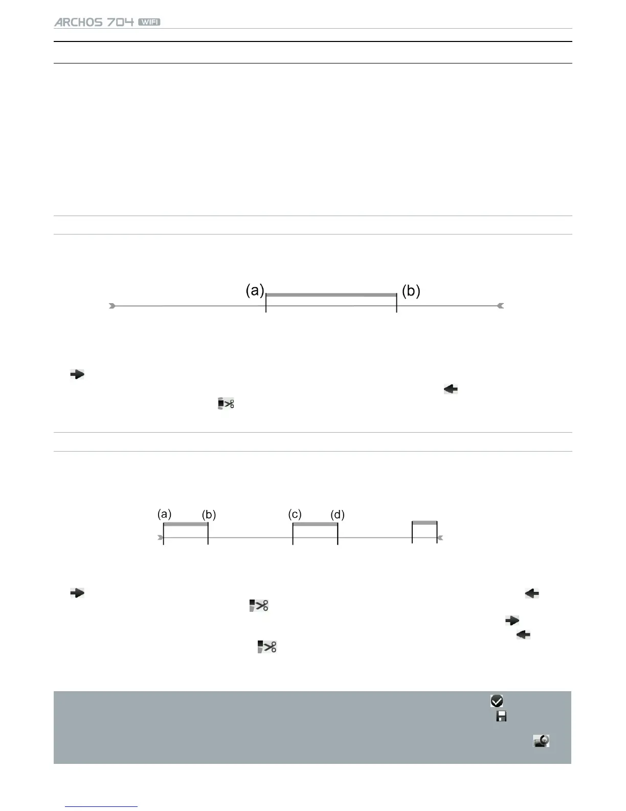 You will mark a segment of your video le, and then you will tell the ARCHOS to delete everything except