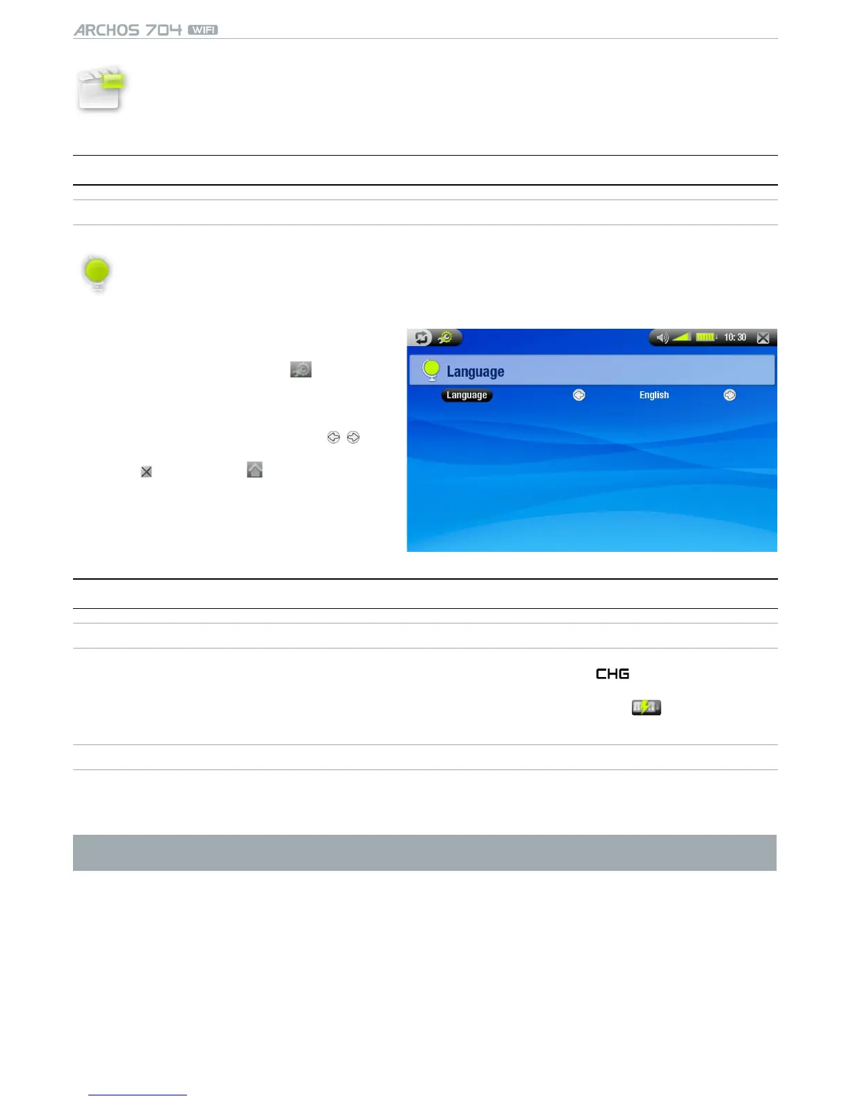 If your language is not available, go to the ARCHOS website (www.archos.com/rmware) and down-