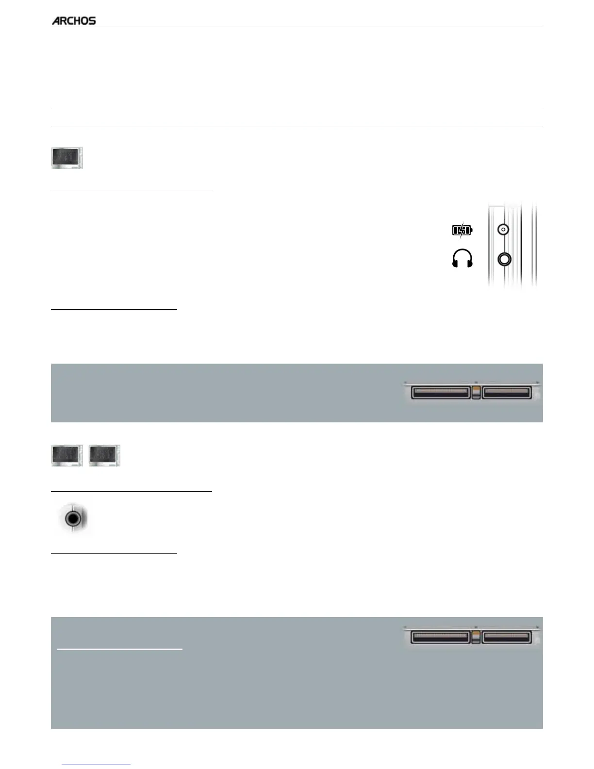 Power jack : charge the battery of your ARCHOS device (see
