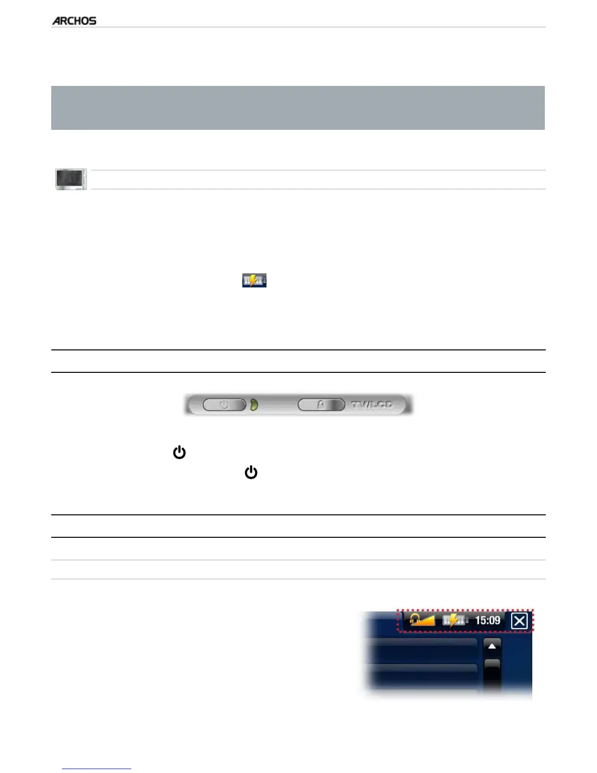 TURNING THE ARCHOS ON/OFF