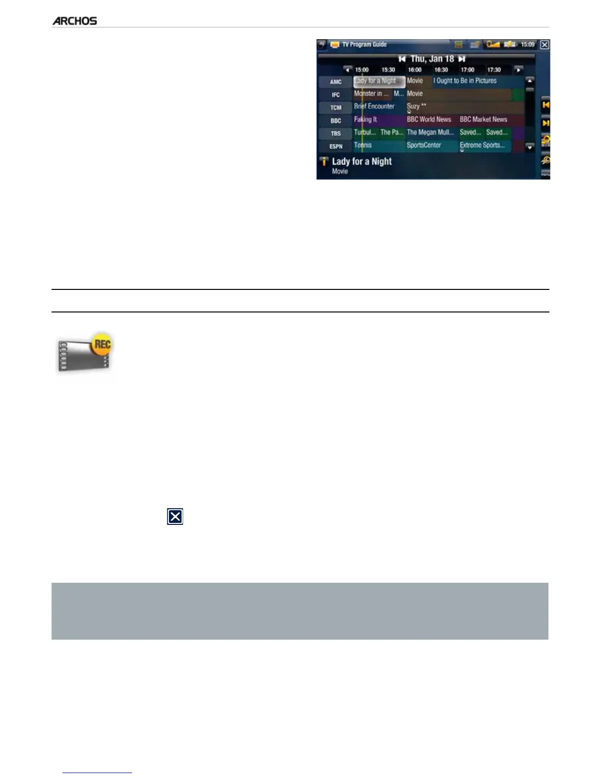 * All video recordings made by your ARCHOS device are saved in the “Video/