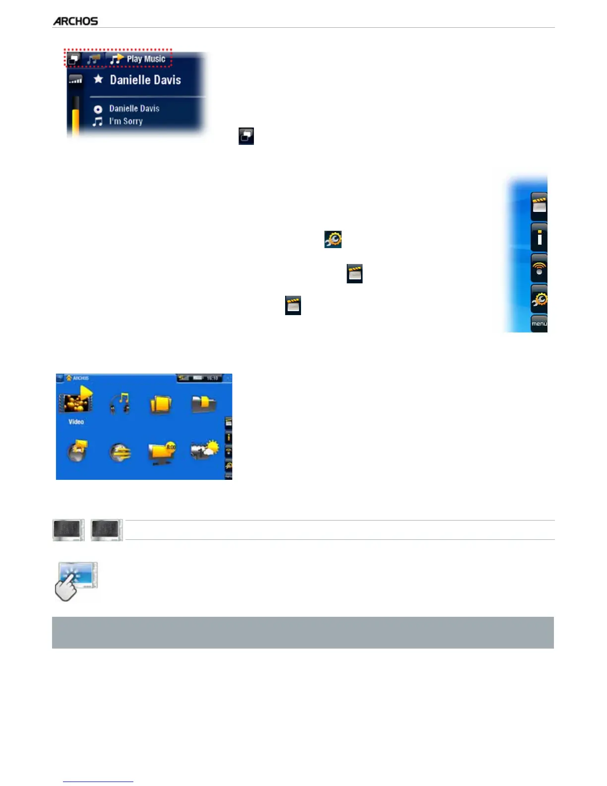 Your ARCHOS is equipped with a touchscreen. Below is a description of the