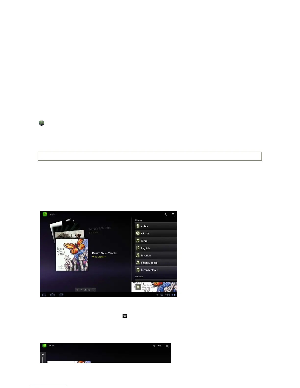 Hold down on an item or tap on the menu icon to display what options are available. When you leave the music playback screen while a song is still playing, it will keep playing