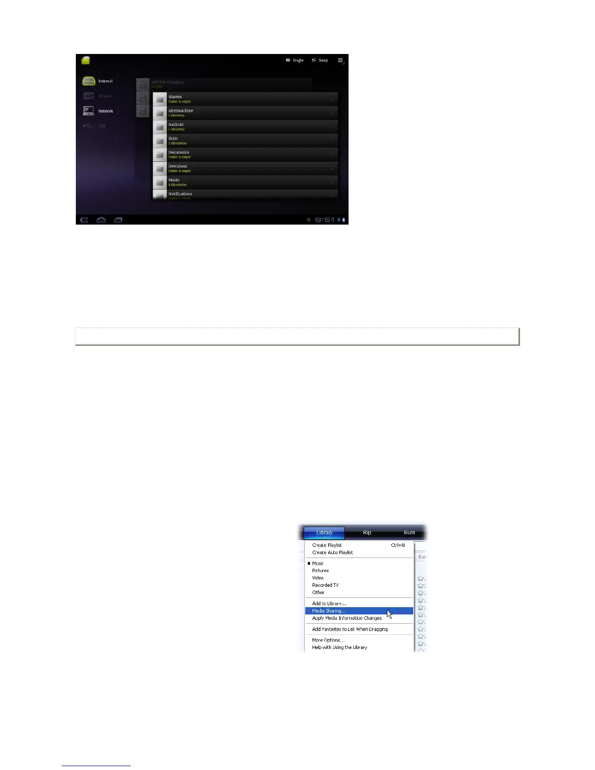 shared folders and files inside it. If you have shared video or music files, you can access these folders directly from the Video application (select Shared Folders (SMB) from the