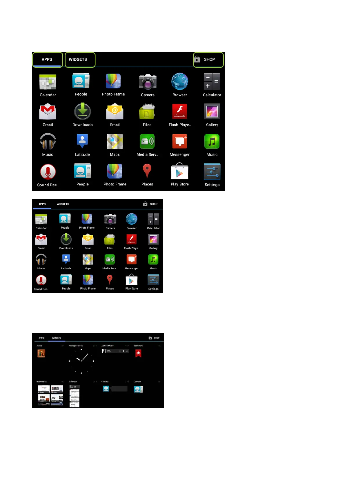 The widgets screen