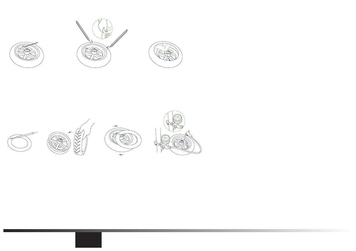 i redom. Uvjerite se da se ventil zraka ne naginje. Zatim umetnite drugu stranu vanjske gume u utor. Konačno upotrijebite tračnicu za