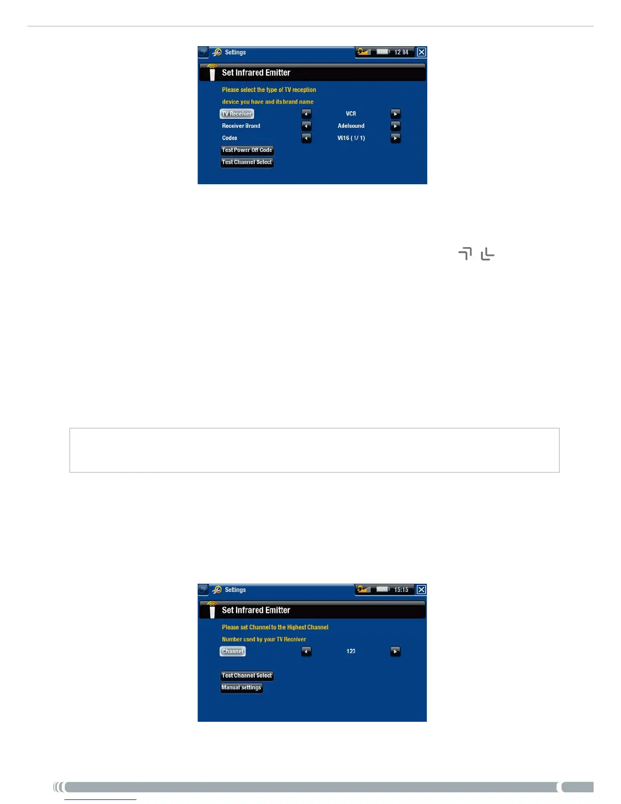 “Receiver brand”: choose the brand of your tuner. You can use the buttons on