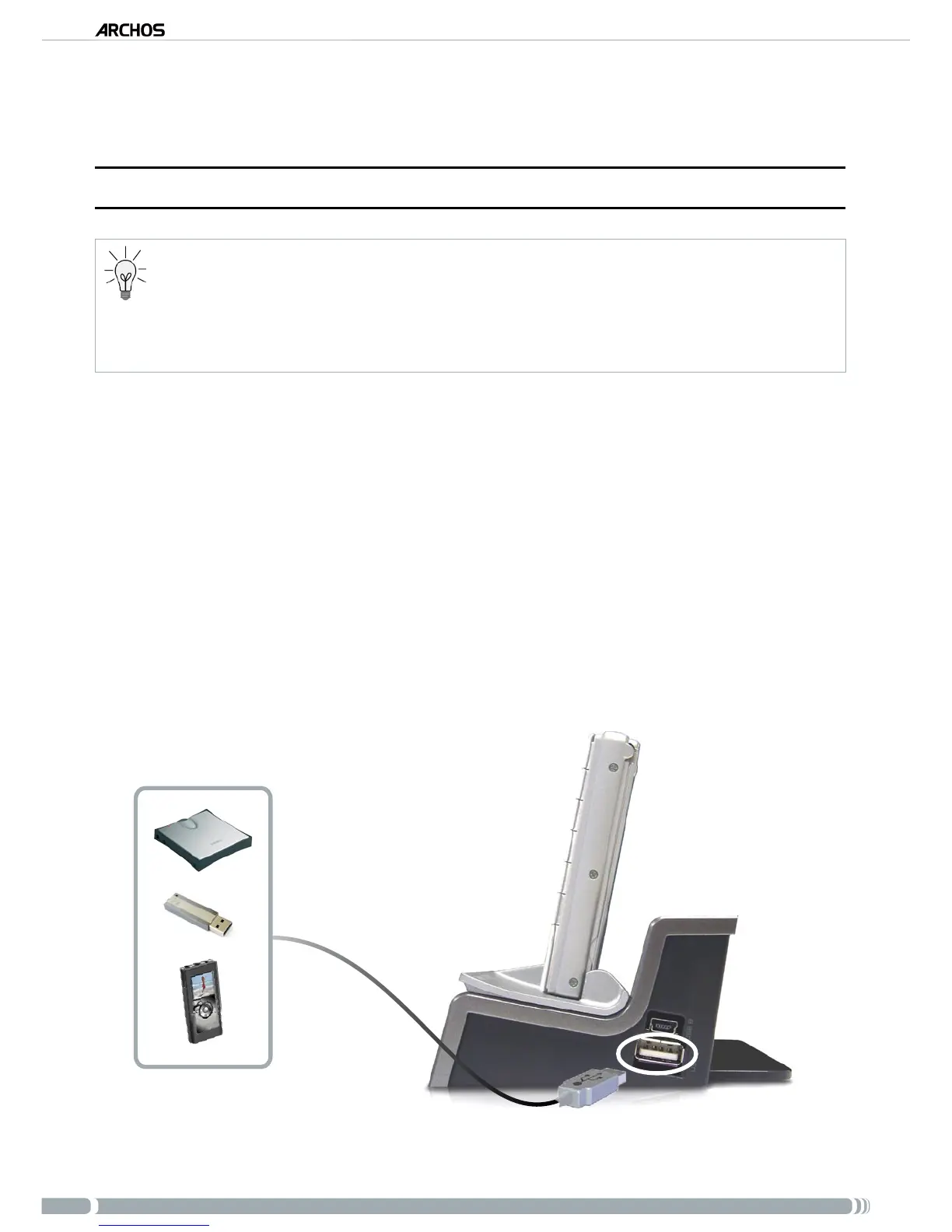 The DVR Station allows you to connect a USB external device to your ARCHOS, so that you can trans-