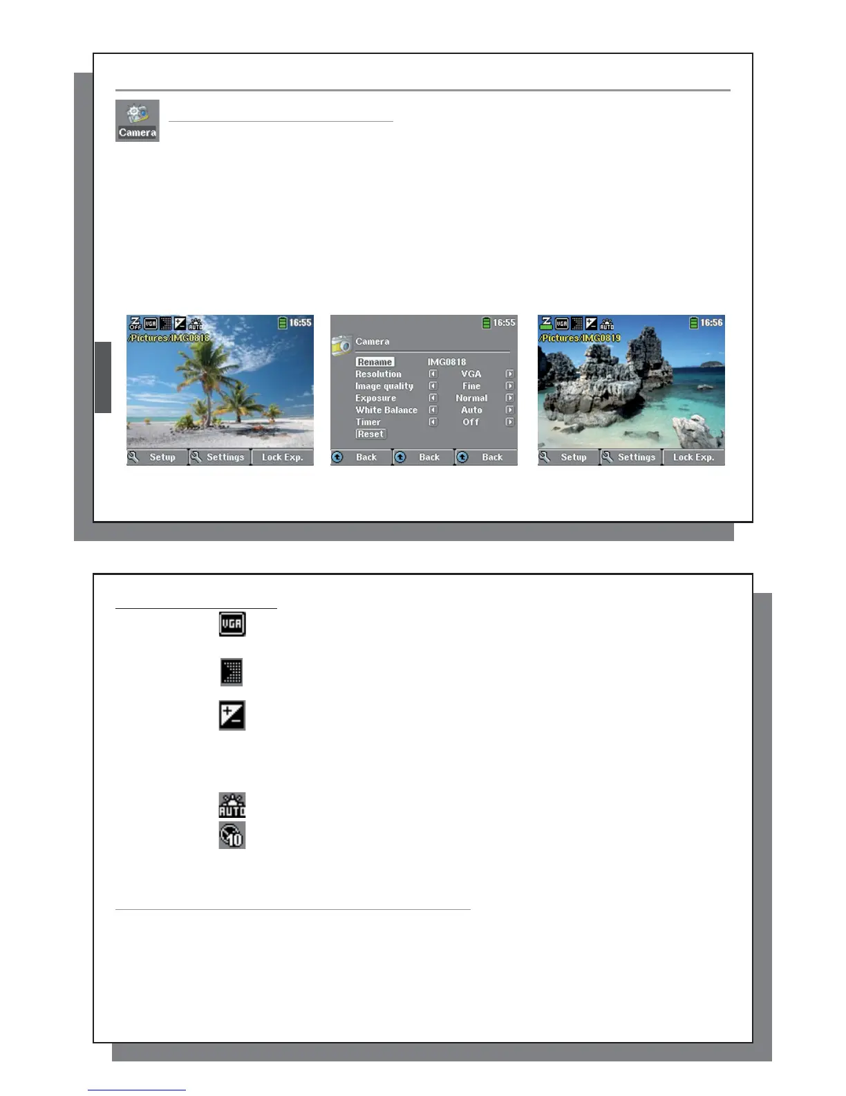 En la pantalla principal, seleccione el icono Cámara y presione enter. Presione el botón F2 (Confi guración) y