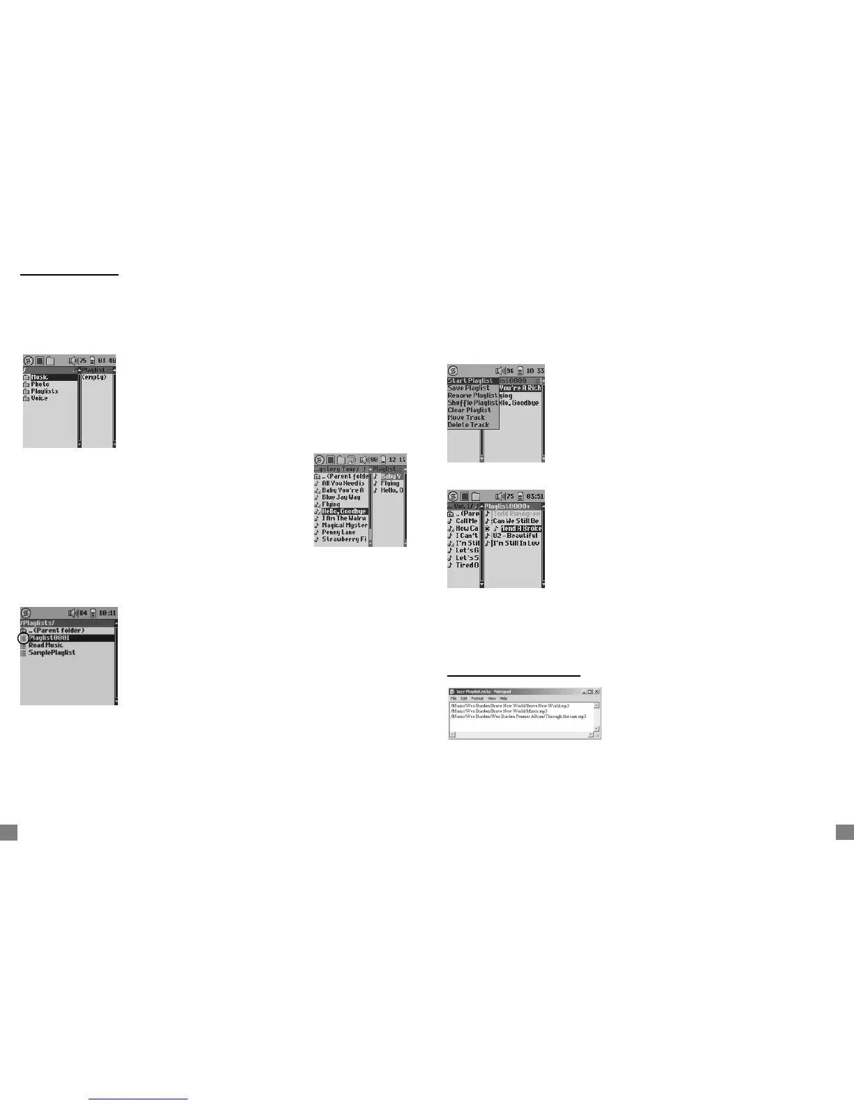 songs from a Playlist, or Save a Playlist as a fi le (fi le type .m3u) to be used another time.