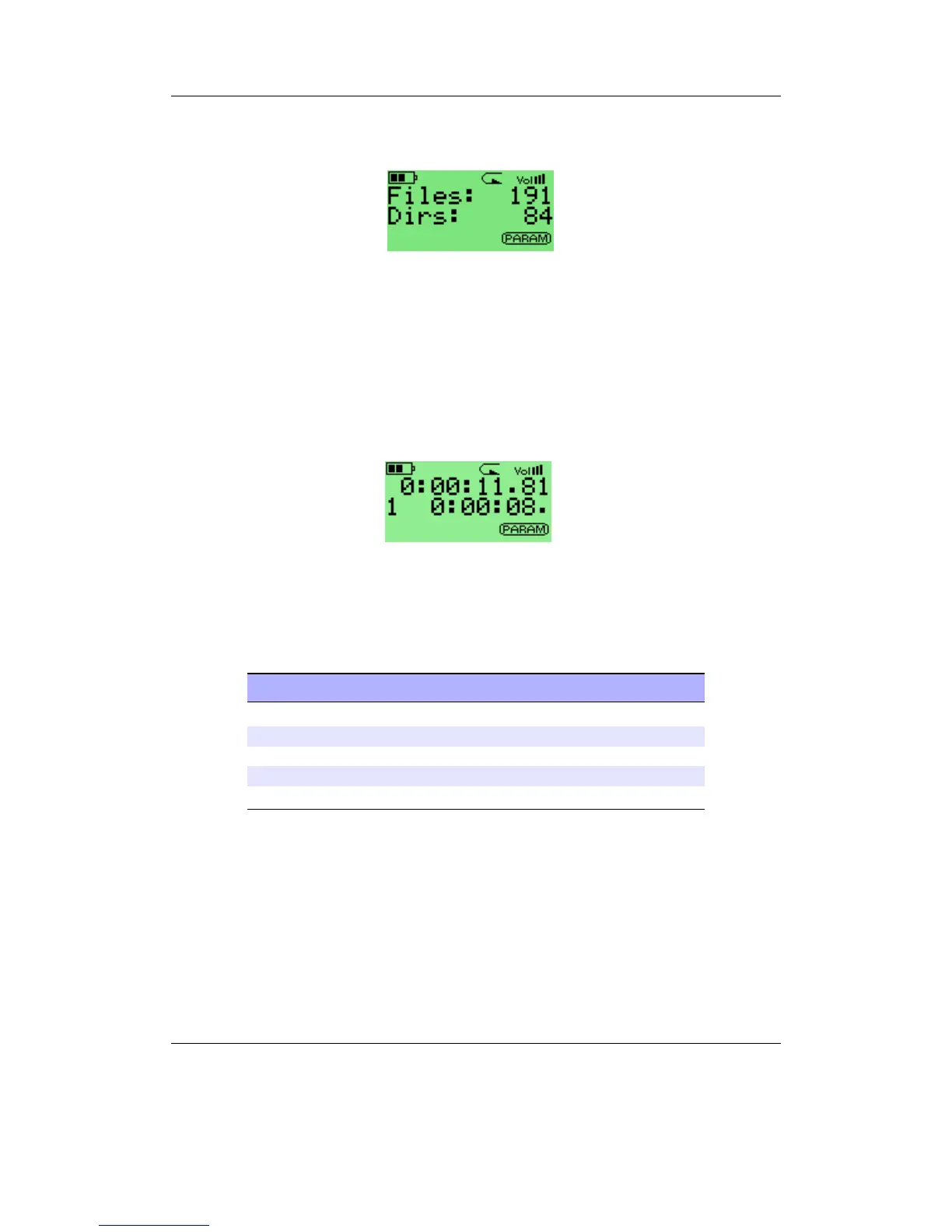 of audio, playlist, image and video files) on your player. Press Menu or Long Menu to