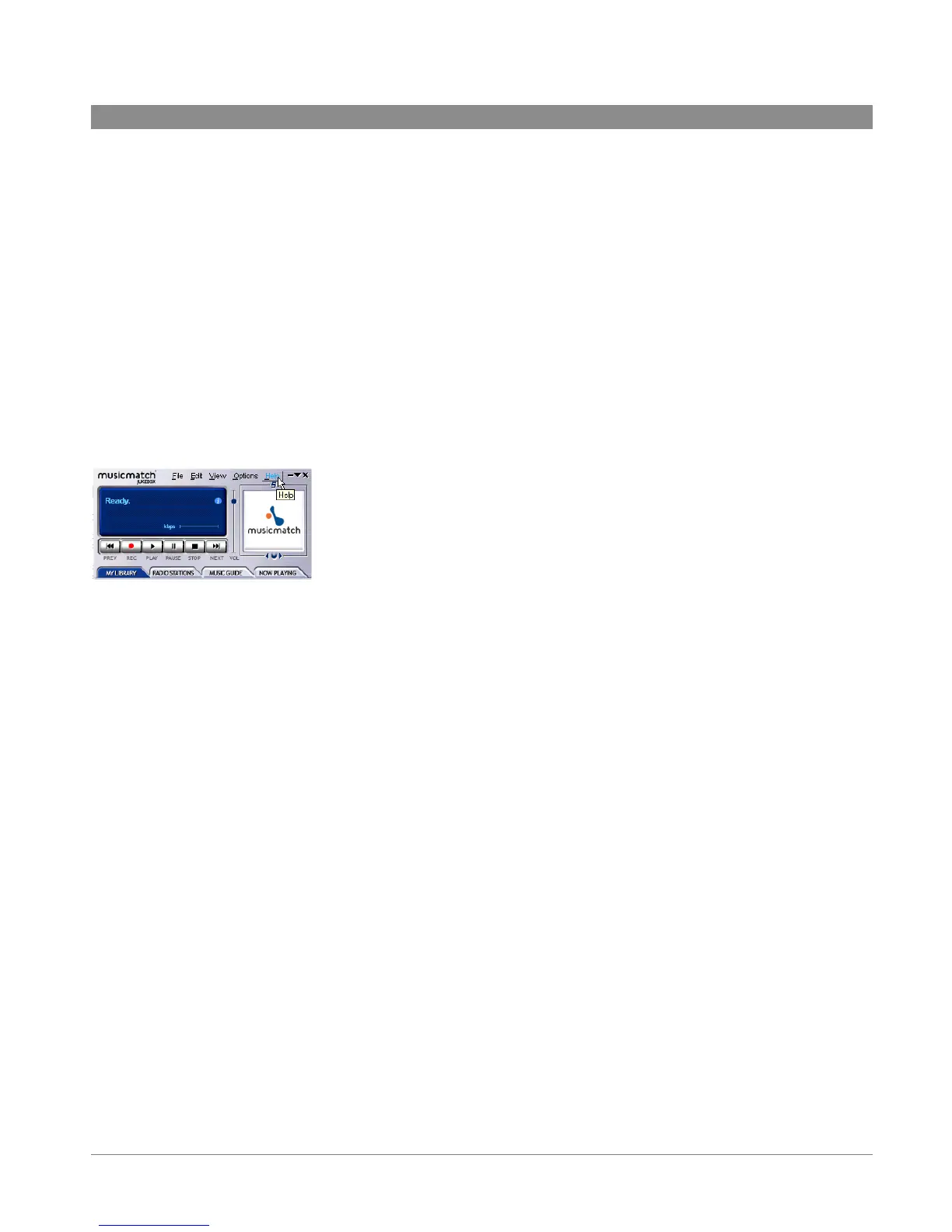 present you with a list of installation options. You can then choose MusicMatch™ in the language of your choice. When installing MusicMatch™,