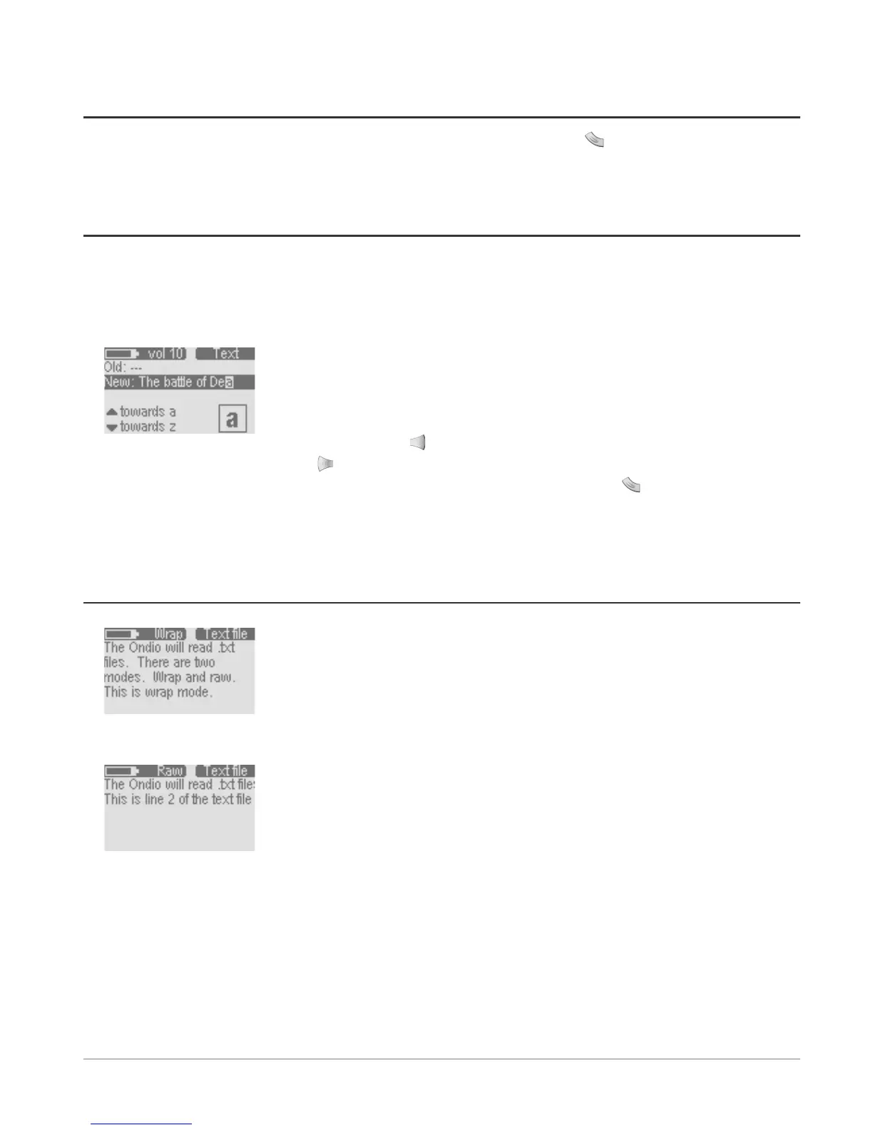 files and create new folders. The Ondio’s text entering screen can become very tedious to use if you have