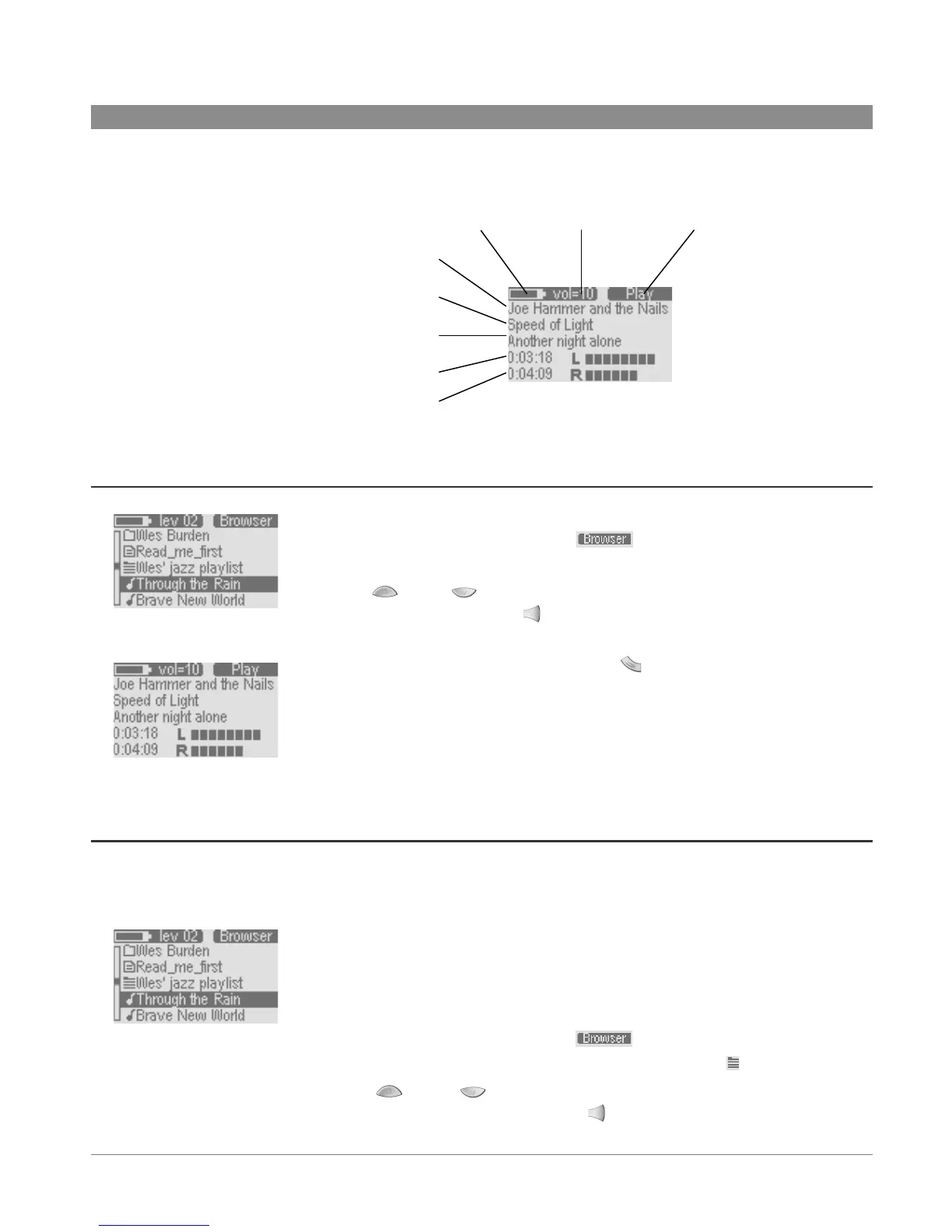 on the Right button. If you want to stop the music and go back to the Browser, click twice on the Mode