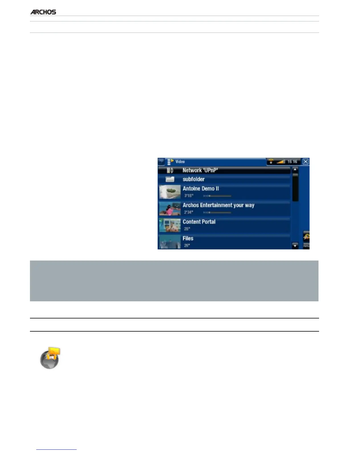 Make sure you have congured your ARCHOS on a WiFi / Ethernet network (see: