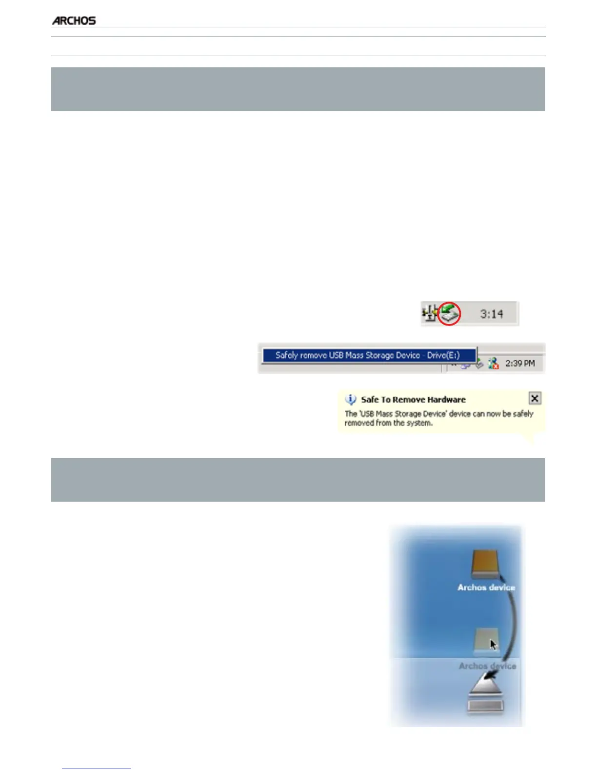 ARCHOS from the computer before disconnecting the USB cable to avoid loss of data