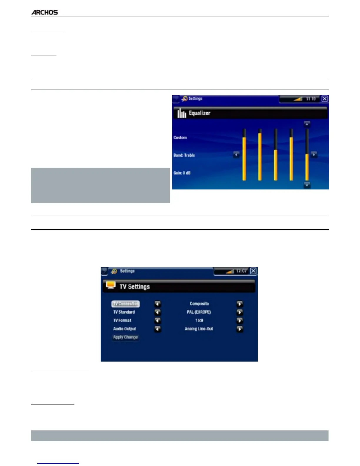 “HDMI”), based on how you have connected the ARCHOS to your TV.