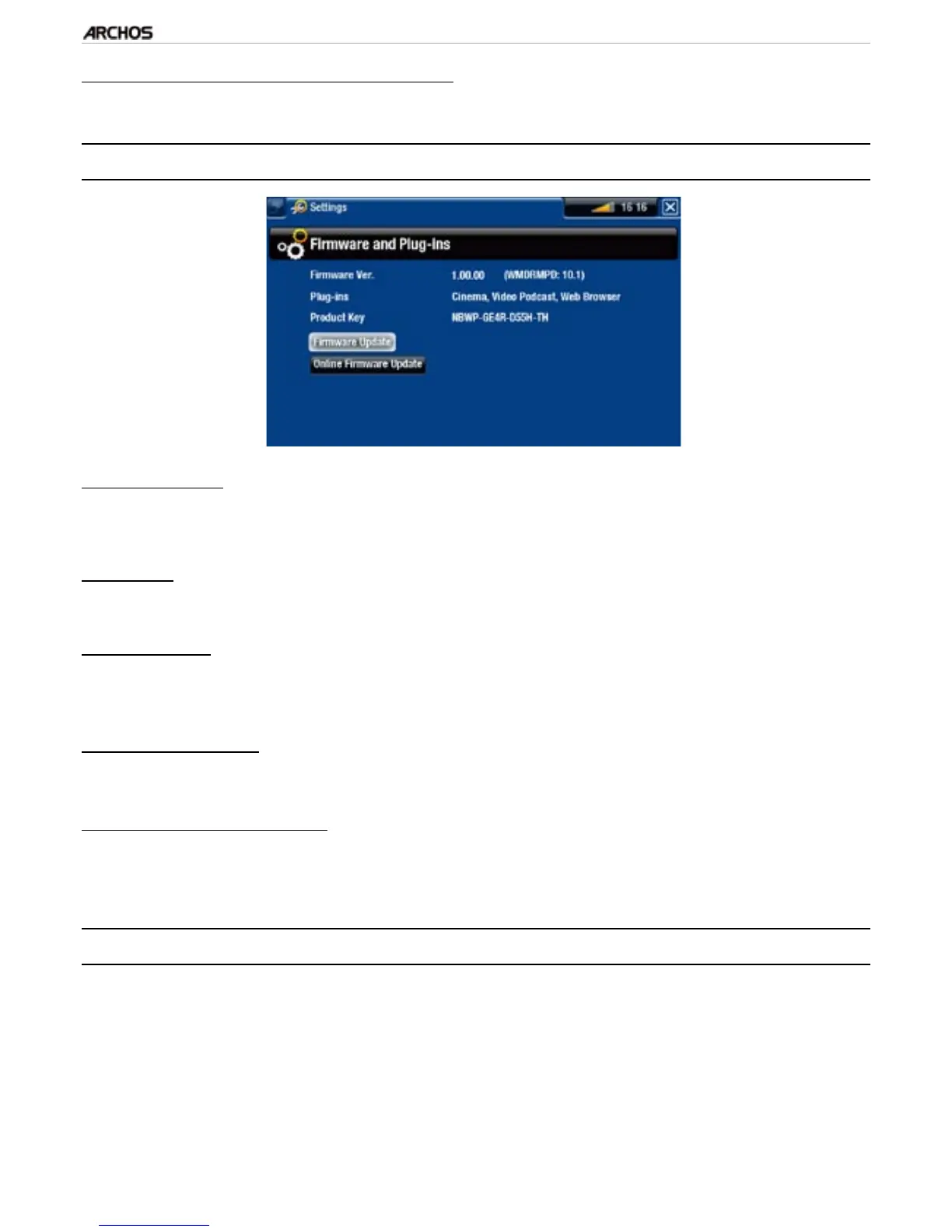 The rmware is the operating system (OS) of your ARCHOS. It is periodically updated