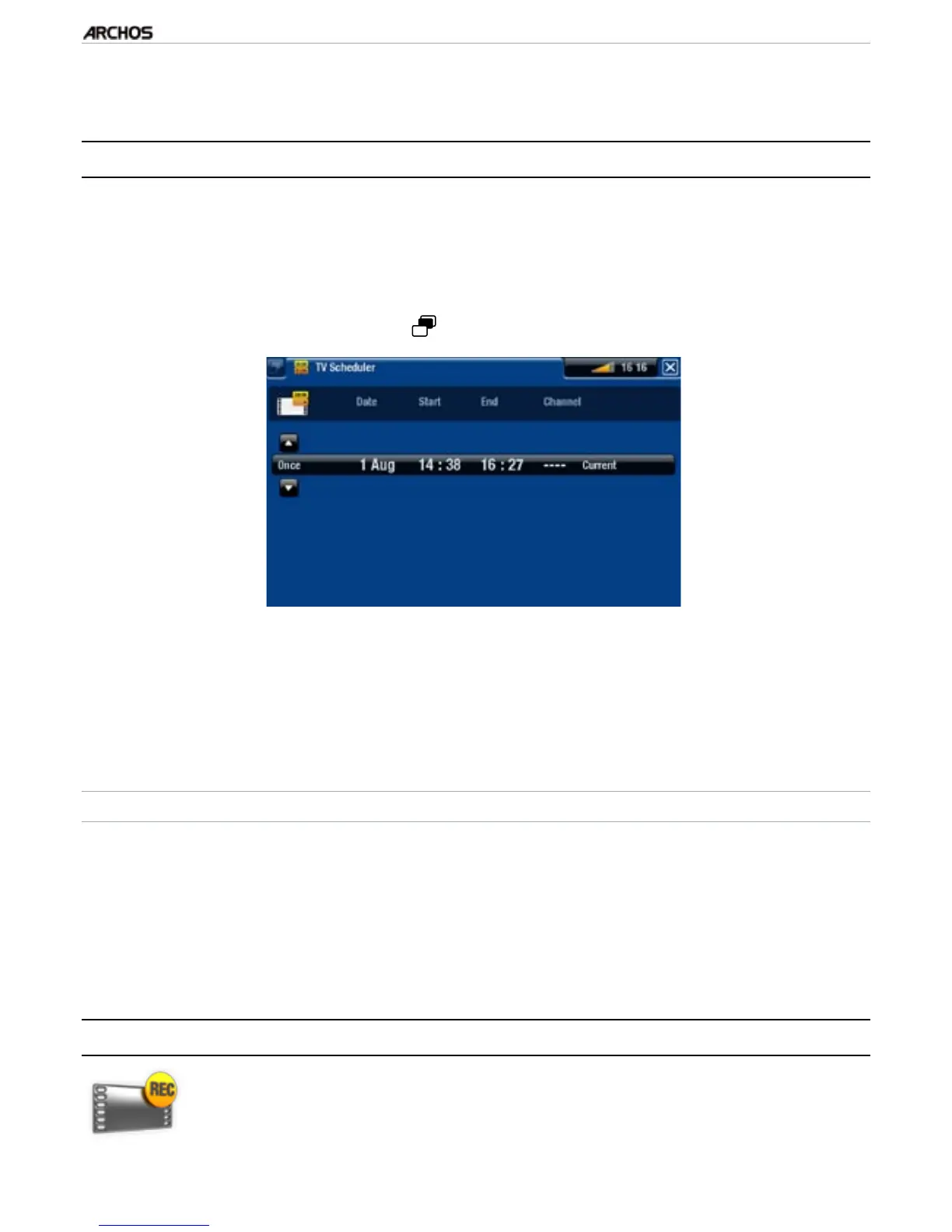 With the tuner connected to your ARCHOS (see: TV Recording: Hardware Setup), you