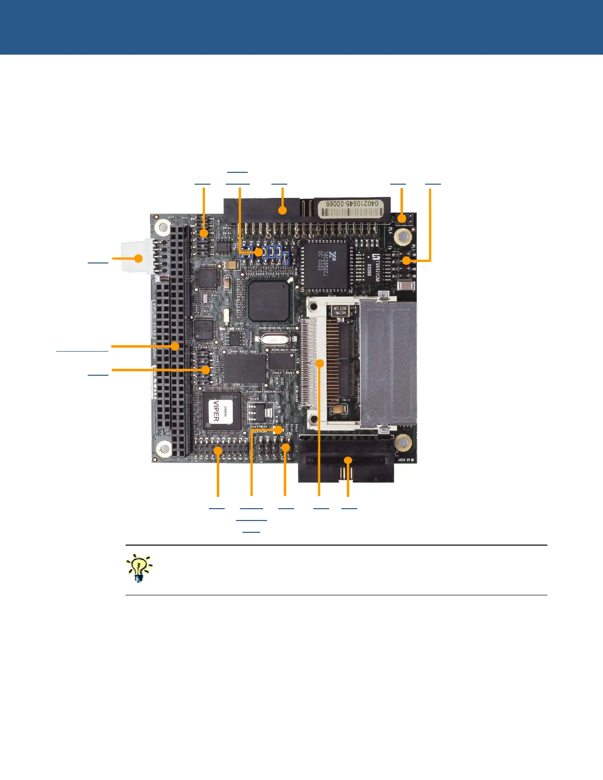 The following diagram shows the location of the connectors, LEDs and jumpers on the
