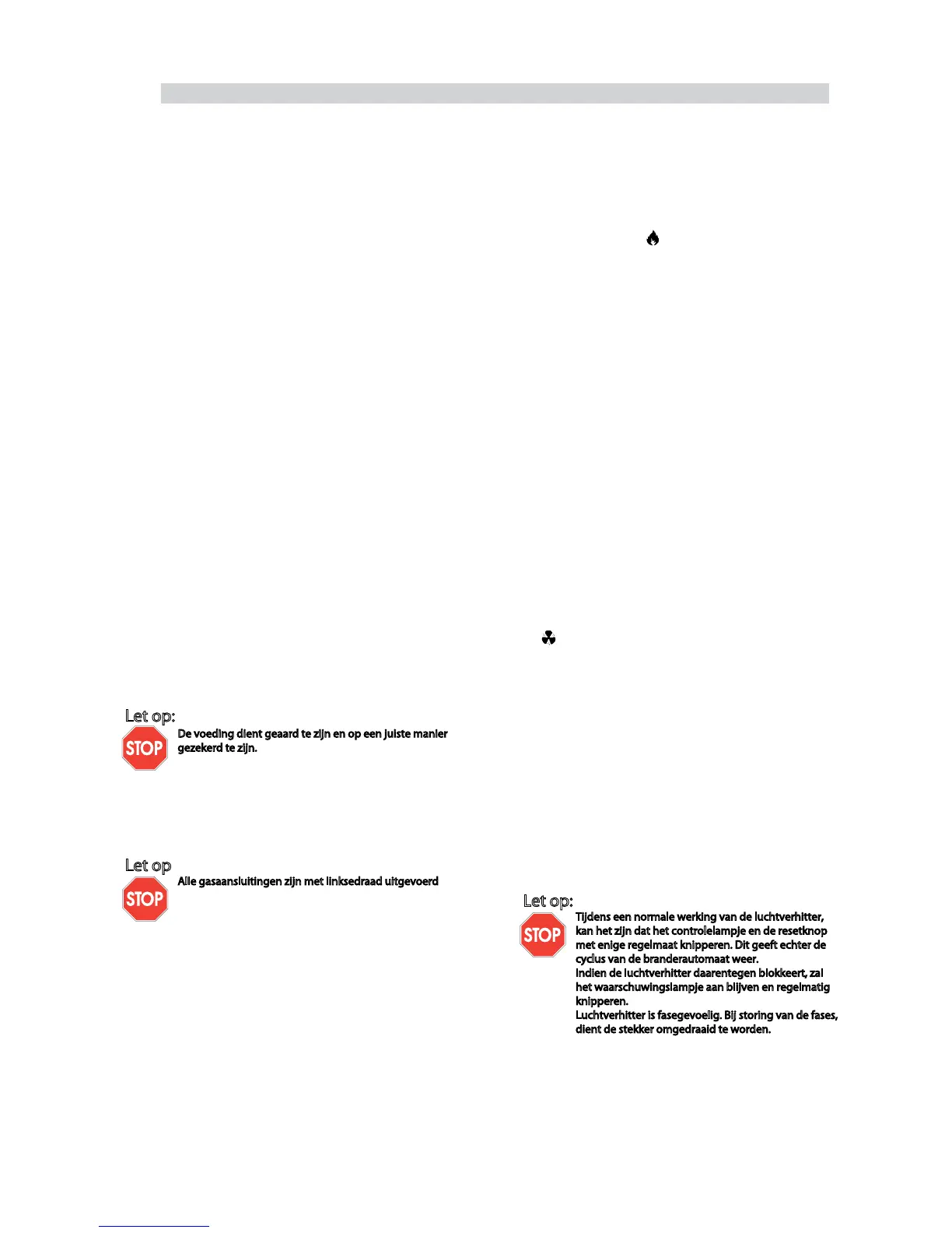 • De luchtverhitter dient goed geïnstalleerd te worden.