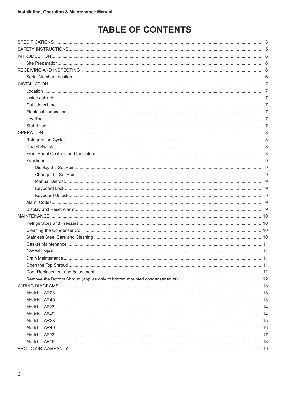 ARCTIC AIR WARRANTY ............................................................................................................................................................... 19