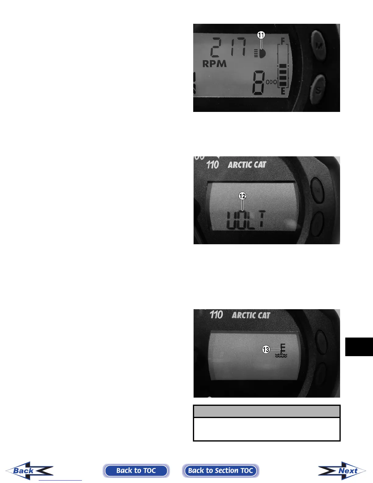 12. Battery Condition Indicator - The word VOLT