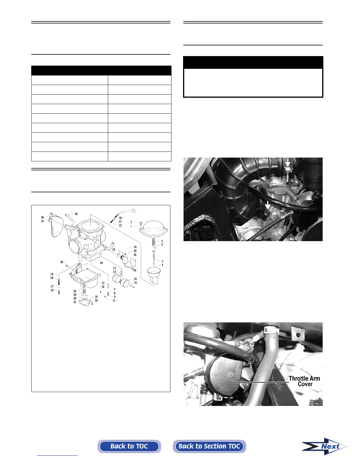 5. Remove the throttle arm cover; then loosen the