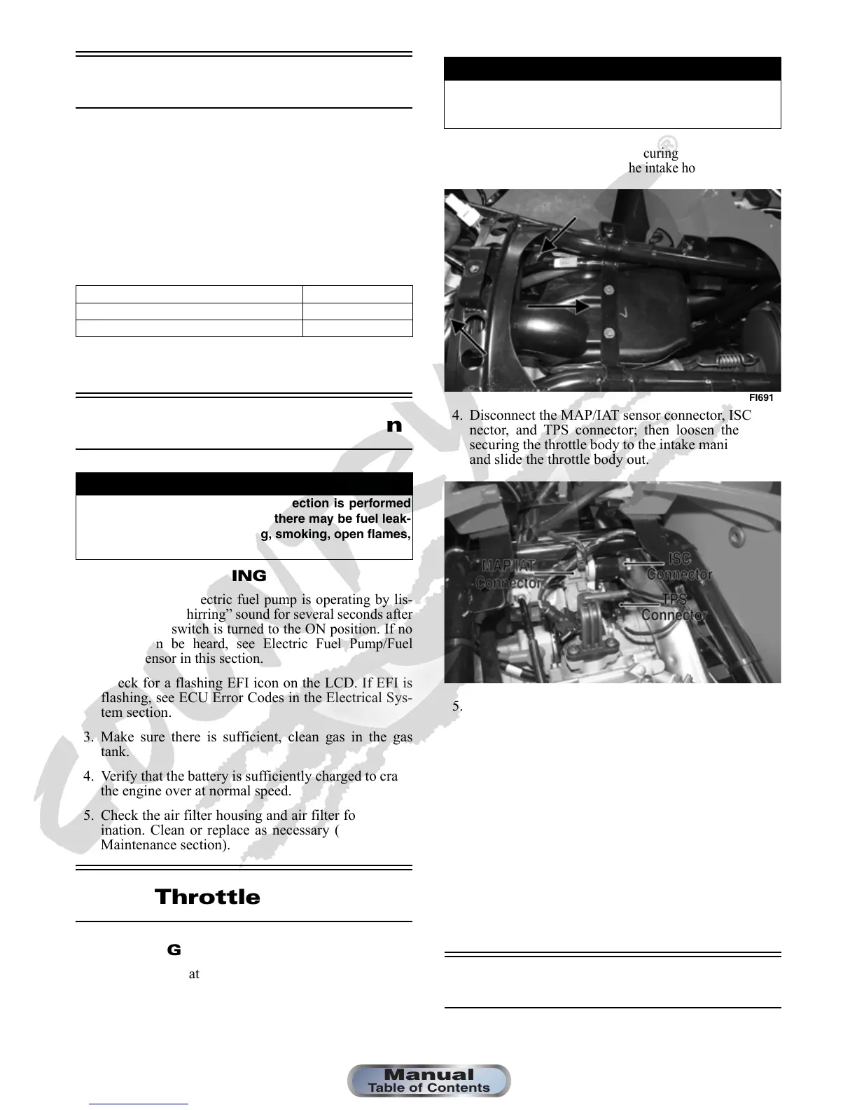 1. Verify that the electric fuel pump is operating by lis-