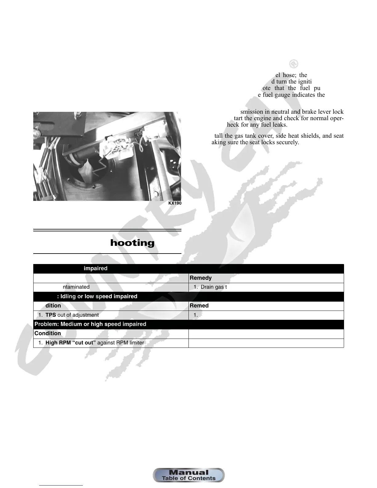 1. High RPM “cut out” against RPM limiter 1. Decrease RPM speed