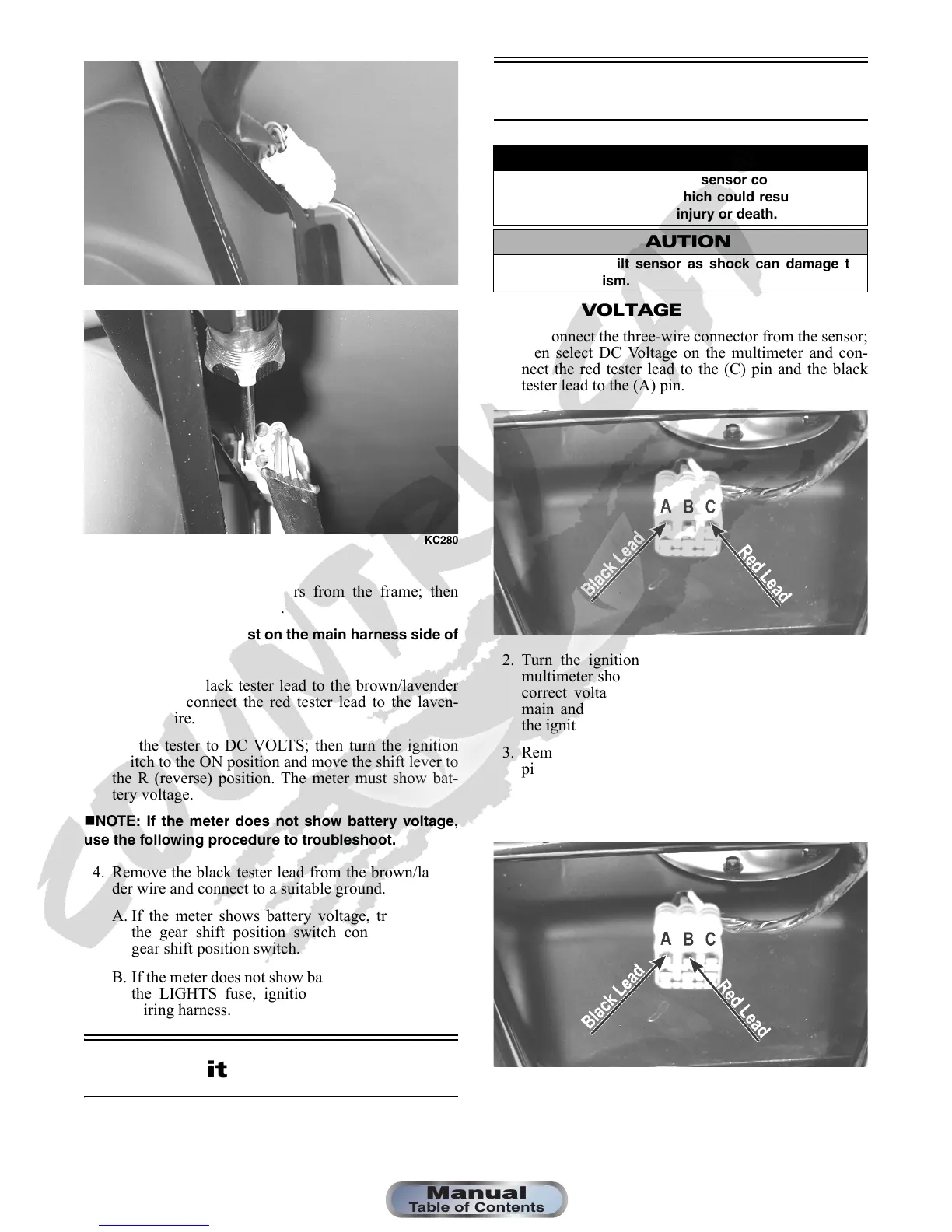 3. Set the tester to DC VOLTS; then turn the ignition