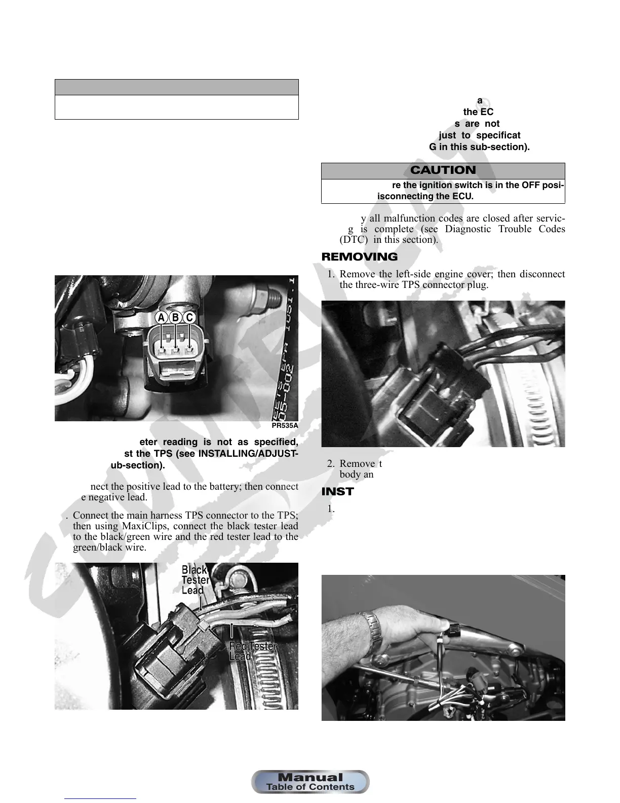 replace or adjust the TPS (see INSTALLING/ADJUST-