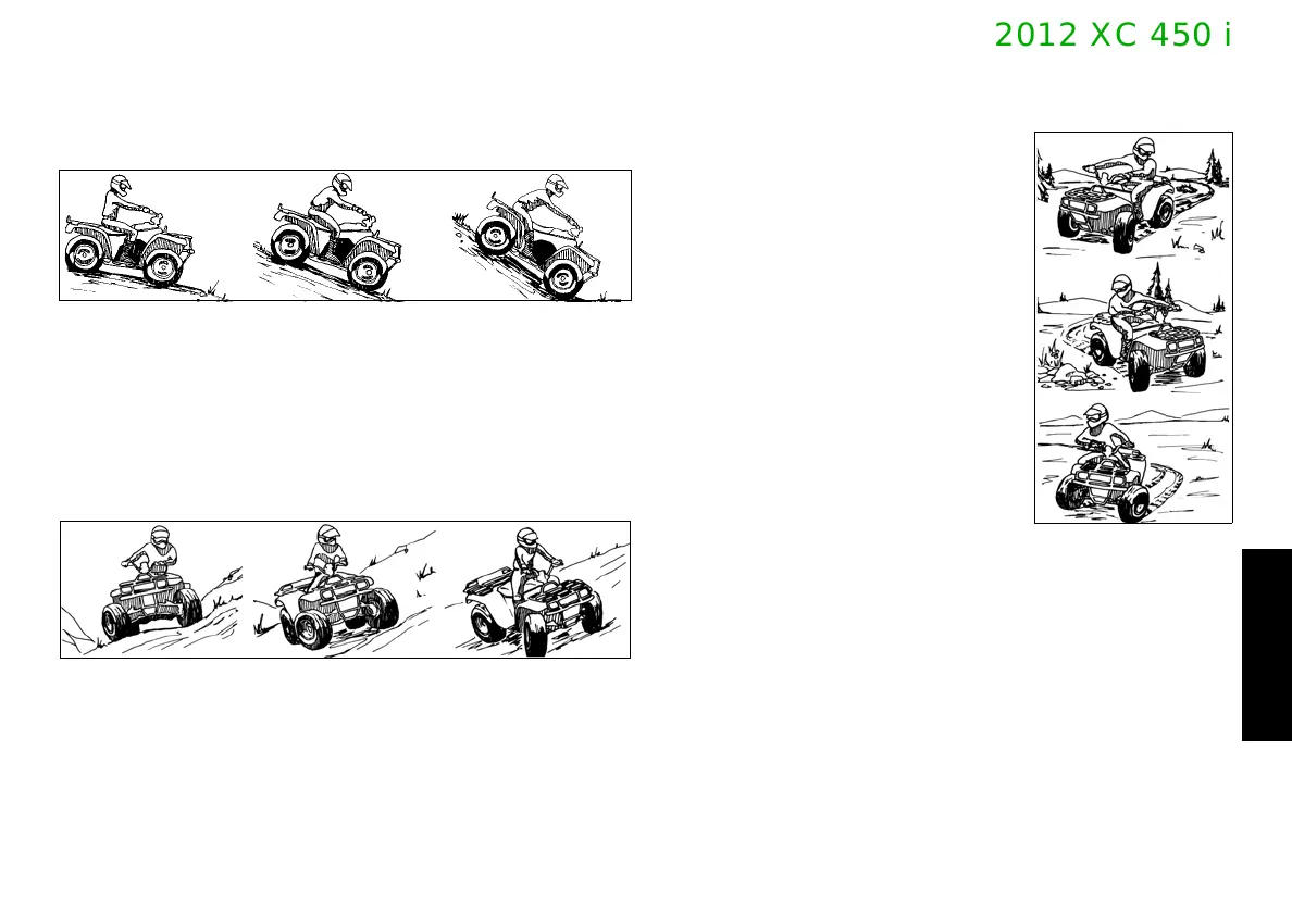 doesn’t work, stop and get off. Dismount the ATV on the uphill side.